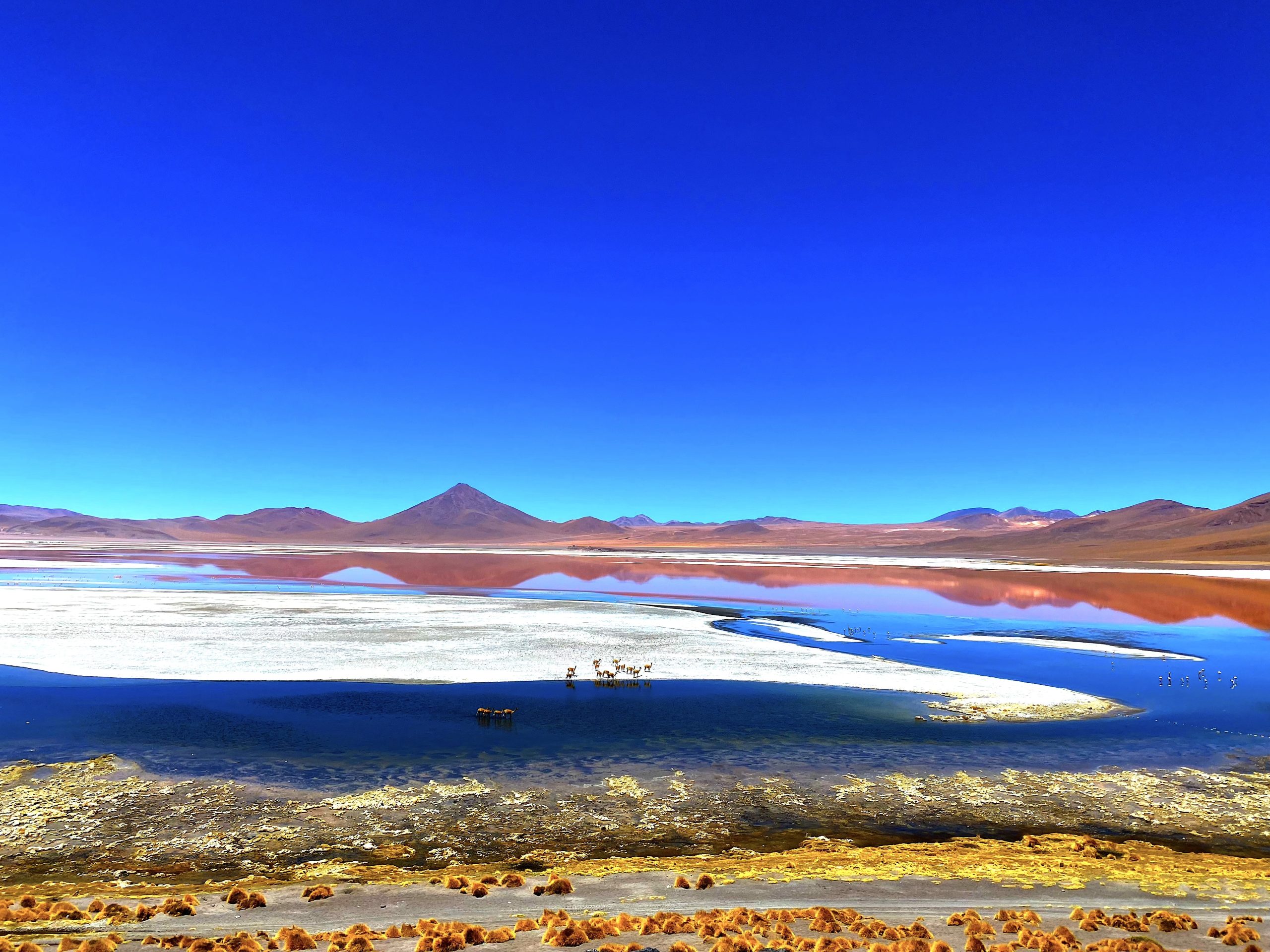 Embark on a private 2-day adventure through the spectacular landscapes of Bolivia, where the highlights are the world-famous Uyuni salt flat and the breathtaking Red Lagoon. Explore the endless white expanse of the salt flats, visiting the Train Cemetery, Colchani, and Incahuasi Island, crowned by a magical sunset over the mirror-like surface. On the second day, venture into the Andean highlands to witness the vivid red waters of Red Lagoon, home to flamingos and vicuñas, surrounded by surreal desert scenery. An unforgettable journey through Bolivia’s most iconic natural wonders.